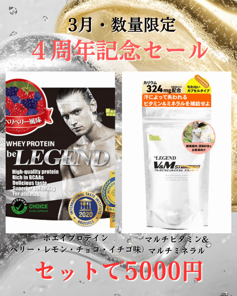 【3月限定】サンライズジム鶴見 4周年記念セール|プロテイン&ビタミンセット5000円